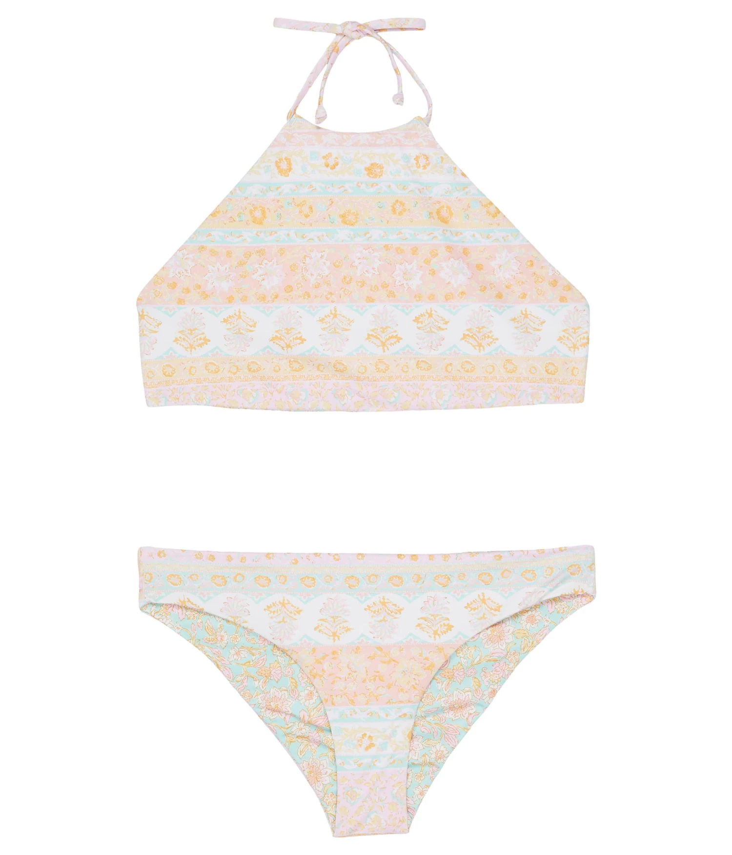 - Don a stylish look as you step in the pool wearing the Billabong® Kids Layered with Love Reversible High Neck Two-Piece Swim Set.