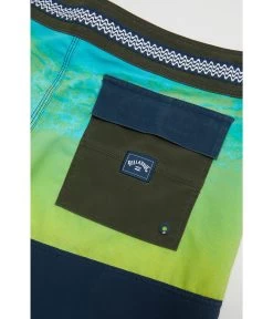- Fun, tie-dye print allover with a branding logo at left hip.