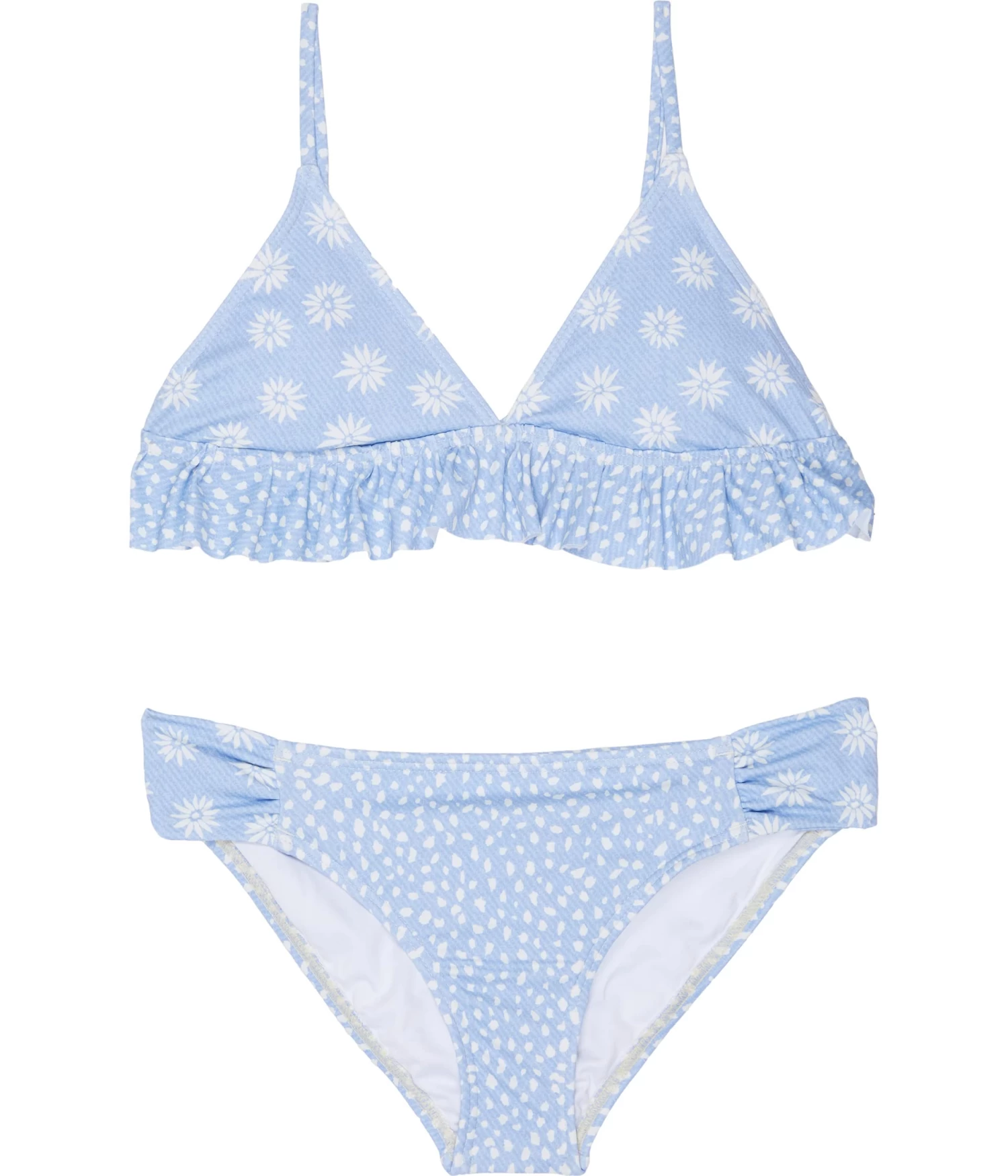 - Elevate her poolside look with this Billabong® Kids Where To Ruffle Tri Two-Piece Swim Set.